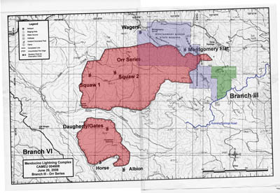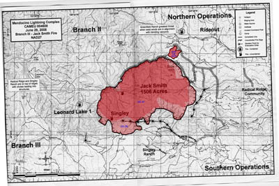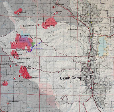 This 7/11/2008 map shows the fires around Ukiah (all borders are approximate).